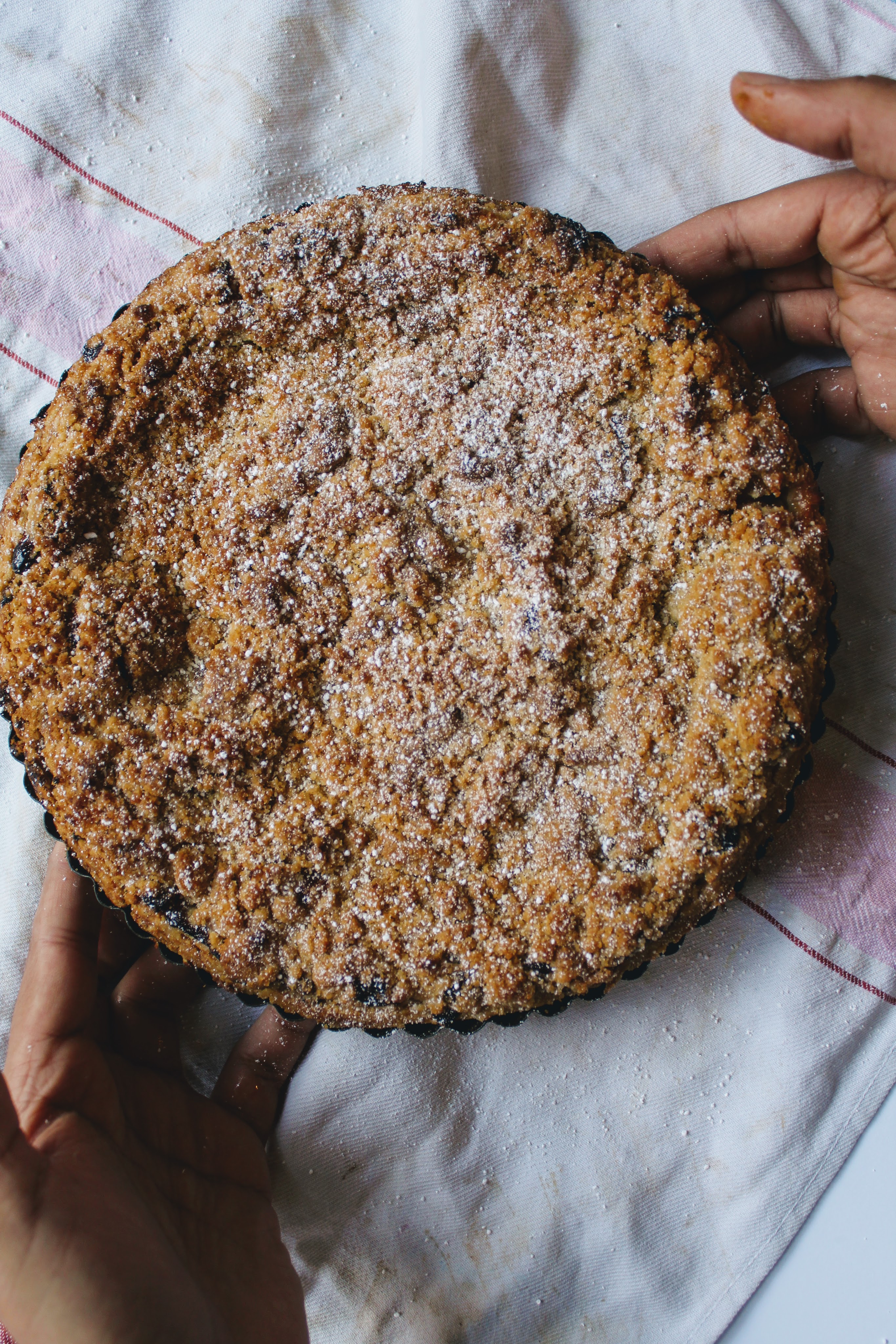 While I was working on the apple trilogy, a woman named Morine down the road put a local call out. Her trees were dropping more fruit than she could use. She welcomed me into her kitchen which was a sea of apples, the floor, the dining table, and every counter covered. As I was filling up a bag full, I spied an apple cake in the corner of the kitchen. A beautiful, tall one, with a big chunk taken out of it. I asked if she had a good apple cake recipe. The two of us, looking through a large ring-bound folder of cake recipes from magazine and newspaper cuttings stashed in plastic Polly pockets, found not one, but exactly three apple cake recipes, each with recommendations scribbled in the margins. There was my apple cake trilogy, not quite in the form I’d thought, but there it was.