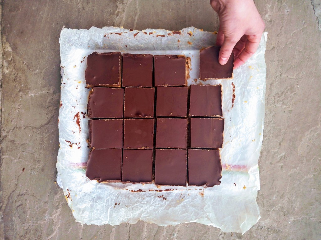 Once the chocolate is set, take it out of the fridge and cut it into squares (or MASSIVE slabs).