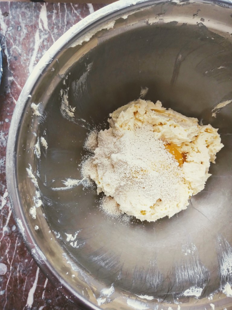 For the shortbread, rub together the flour, sugar and cubed butter in a bowl until the mixture resembles bread crumbs. Once there are no more large lumps of butter scrunch the mixture together so it forms a dough. Try not to kneed the dough, just bring the crumbs together.