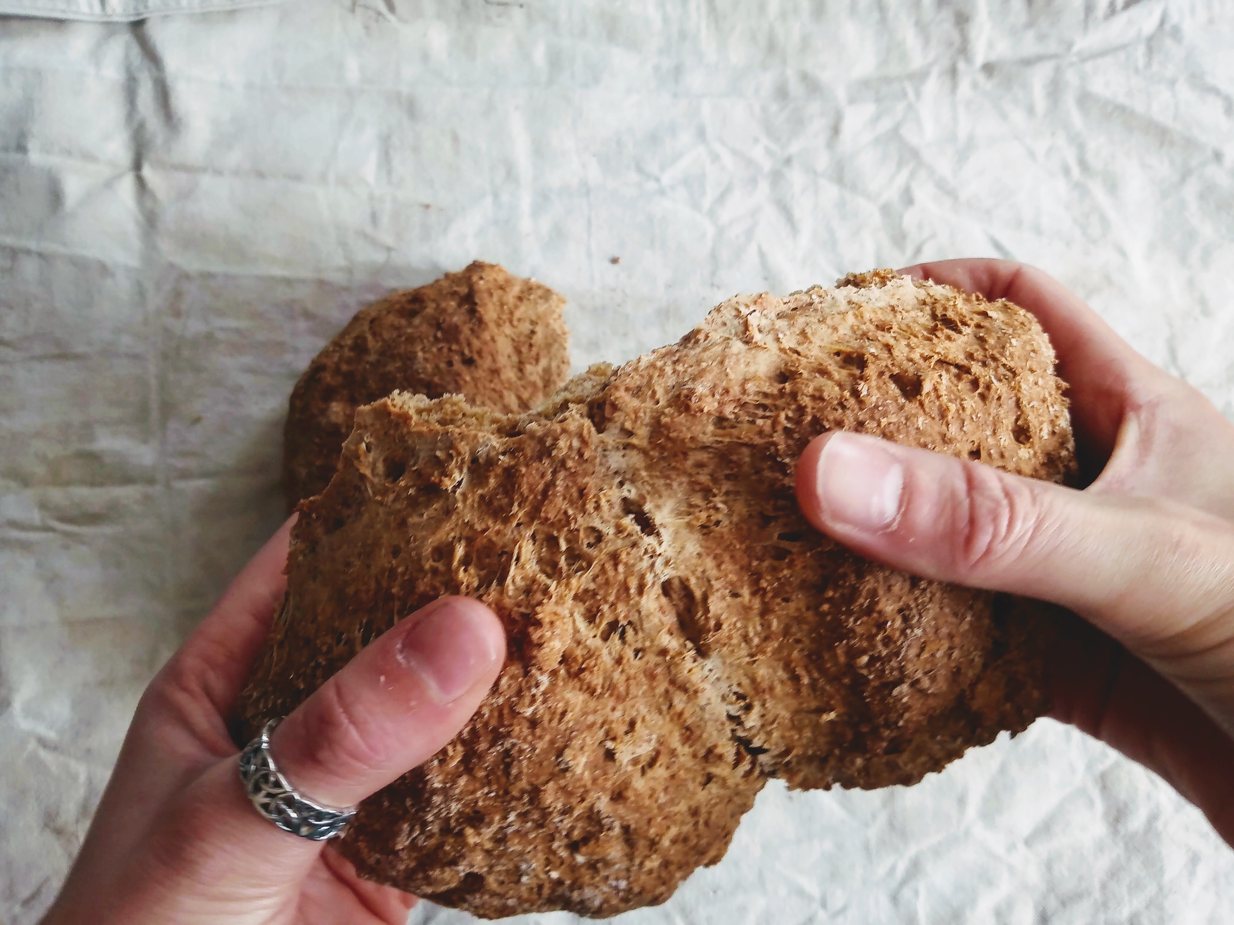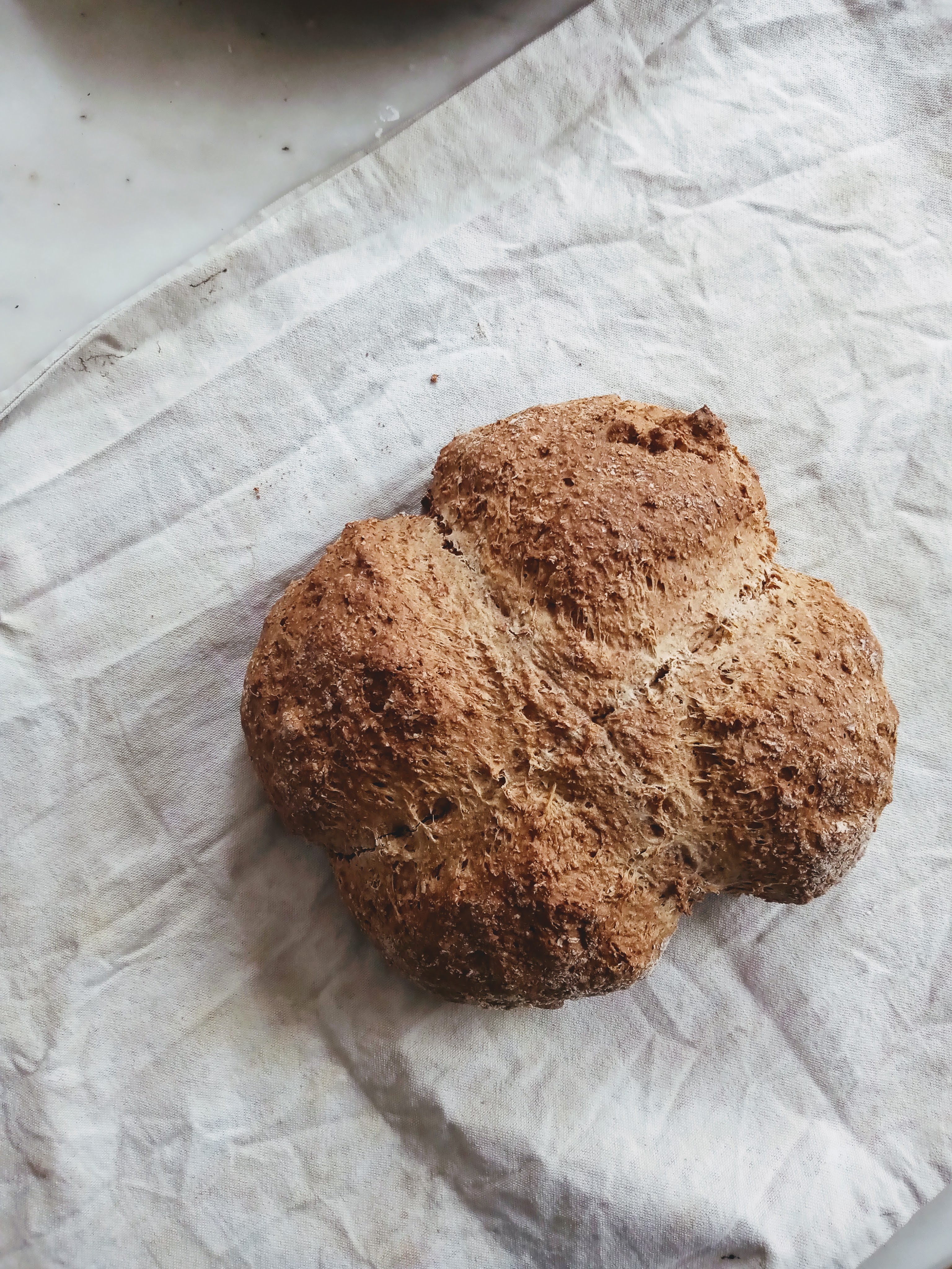 Once you’ve taken it out of the oven wrap the loaf in a clean tea towel and allow to cool before eating. Wrapping the loaf in a tea towel will give you a moist, soft bread.