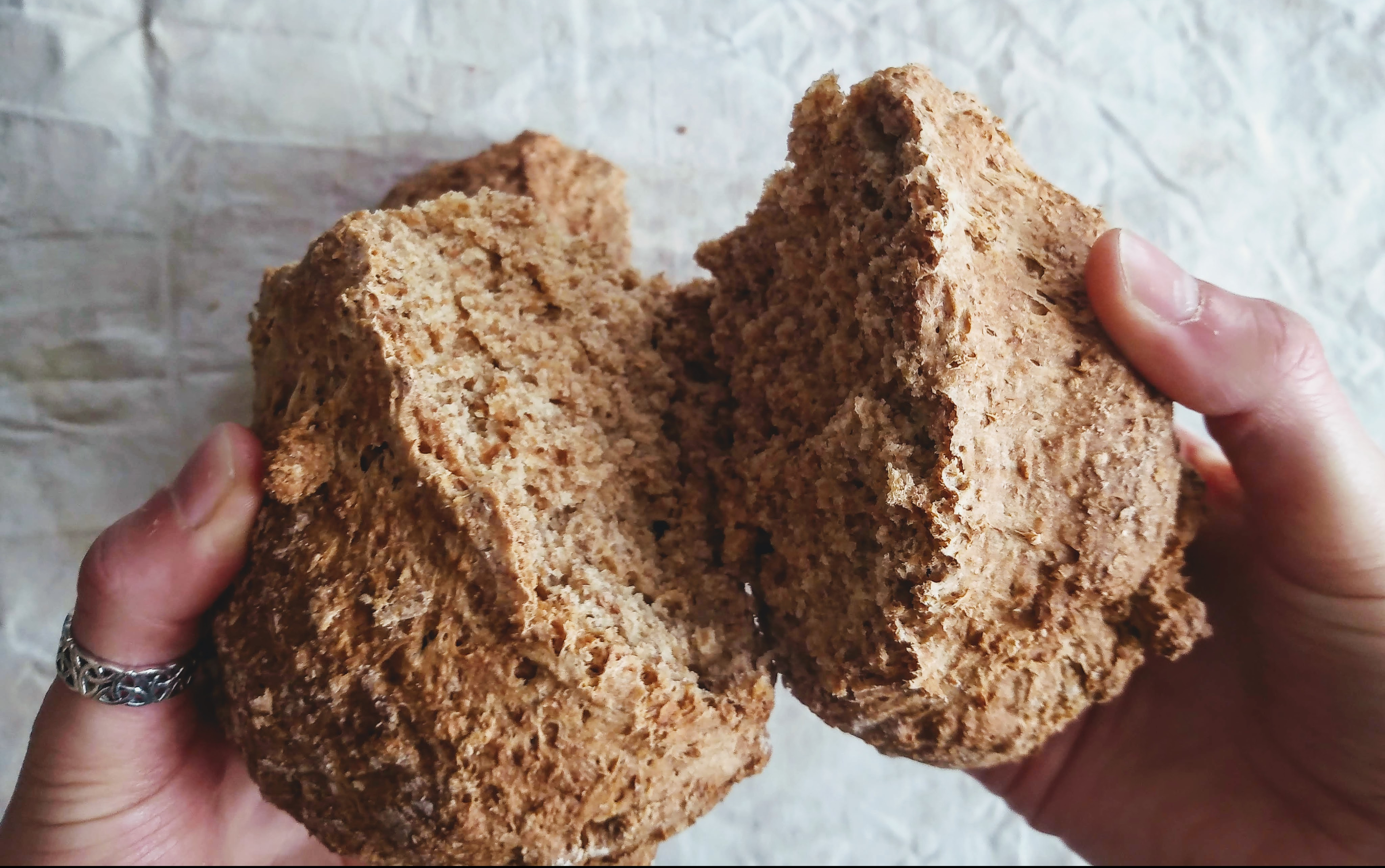 WOW too much writing. I want soda bread. Joe, this is the bread I was telling you to make the other day. The reason this recipe is magic is because, from start to finish, you get fresh bread in under an hour. Soda bread uses bicarbonate of soda to rise, instead of yeast. So, once all the ingredients are mixed it can go straight in the oven, rather than having to wait for the yeast in the dough to ferment.