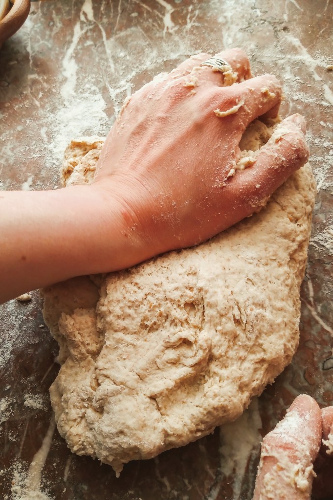 Add the wet mix to the dry, followed the by the squashed and not squashed blueberries. Fold to combine, careful not to overmix – about 15 folds of a spatula will do it. There might be a few small dry patches of flour, that’s ok! Better that than an overworked batter.