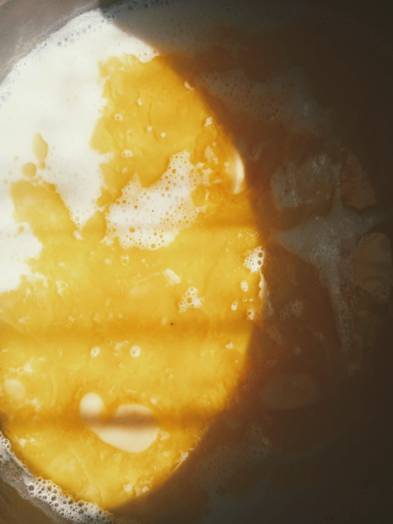 Squash about a third of the blueberries with the back of a folk, you don’t want to turn them into a pulp, just burst them a bit. Set aside.